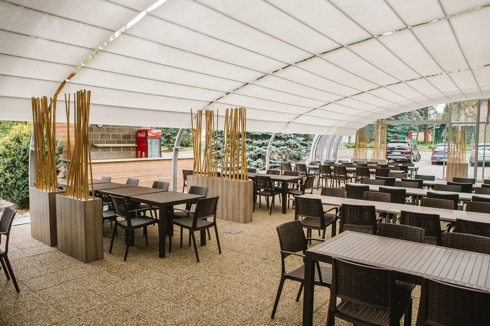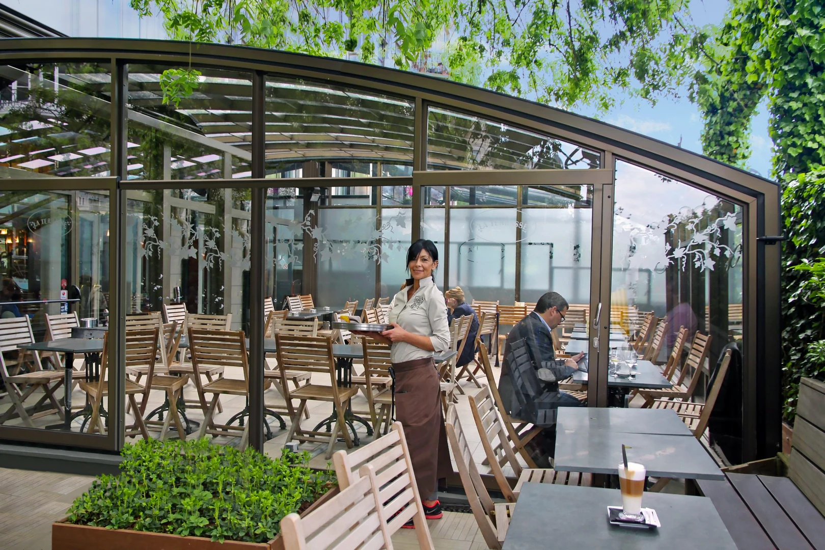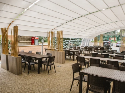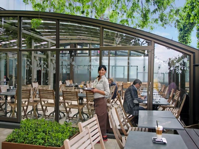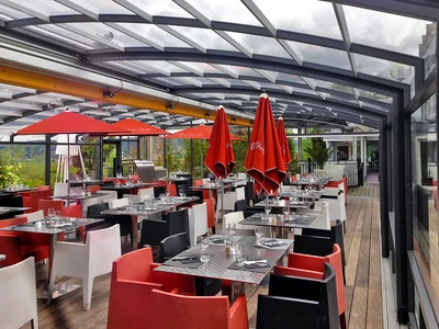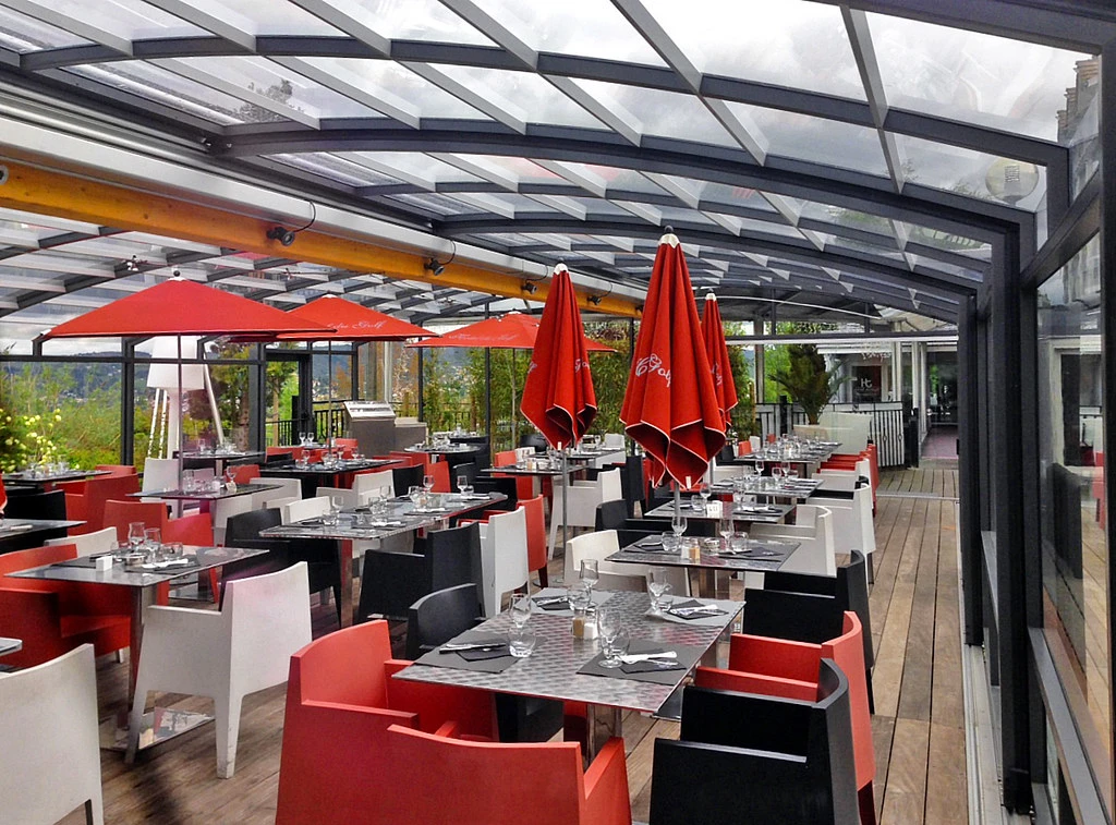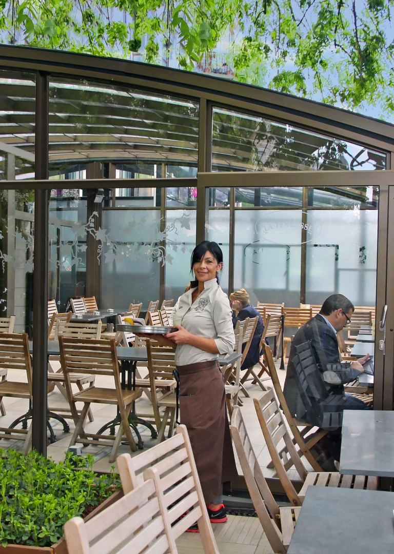 Utöka din verksamhet med en extra fullt användbar yta. Ett täckt uterum erbjuder gästerna bekväm sittplats i alla väder – skydd mot regn, vind och direkt solljus. Under vintermånaderna kan det kompletteras med uppvärmning och förvandlas till en året-runt-serviceyta. För restauranger innebär detta fler bord och högre intäkter; för hotell kan det bli en lugn frukostzon eller en kvällsbar med utsikt. Den moderna designen och den högkvalitativa utförandet av uterummet förstärker dessutom anläggningens estetiska helhetsintryck.