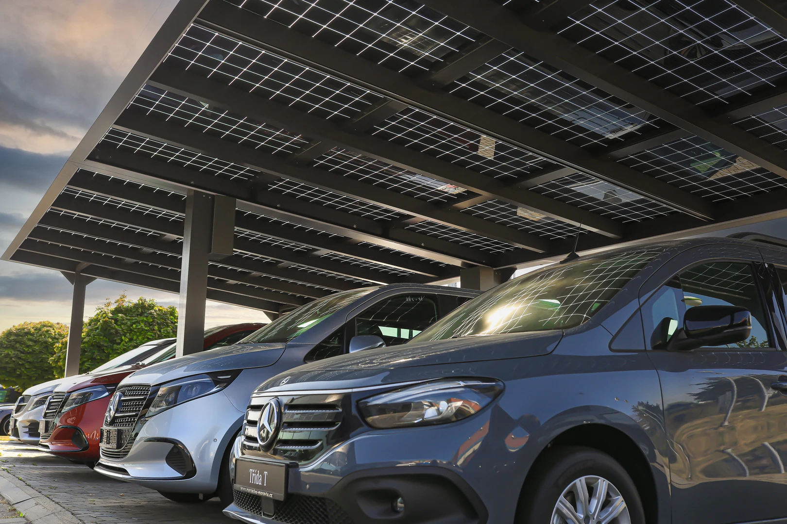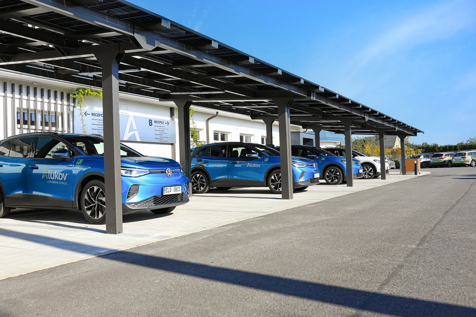 Taket skyddar både företags- och besöksfordon från regn, snö, hagel och stark sol. Det bidrar till användarkomfort och förlänger fordonsparkens livslängd. -