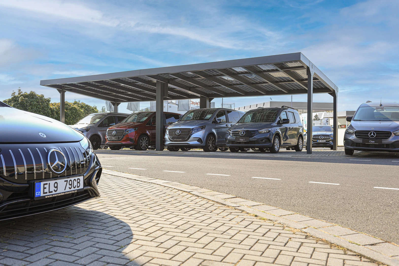 Solcarportar för företagsparkering