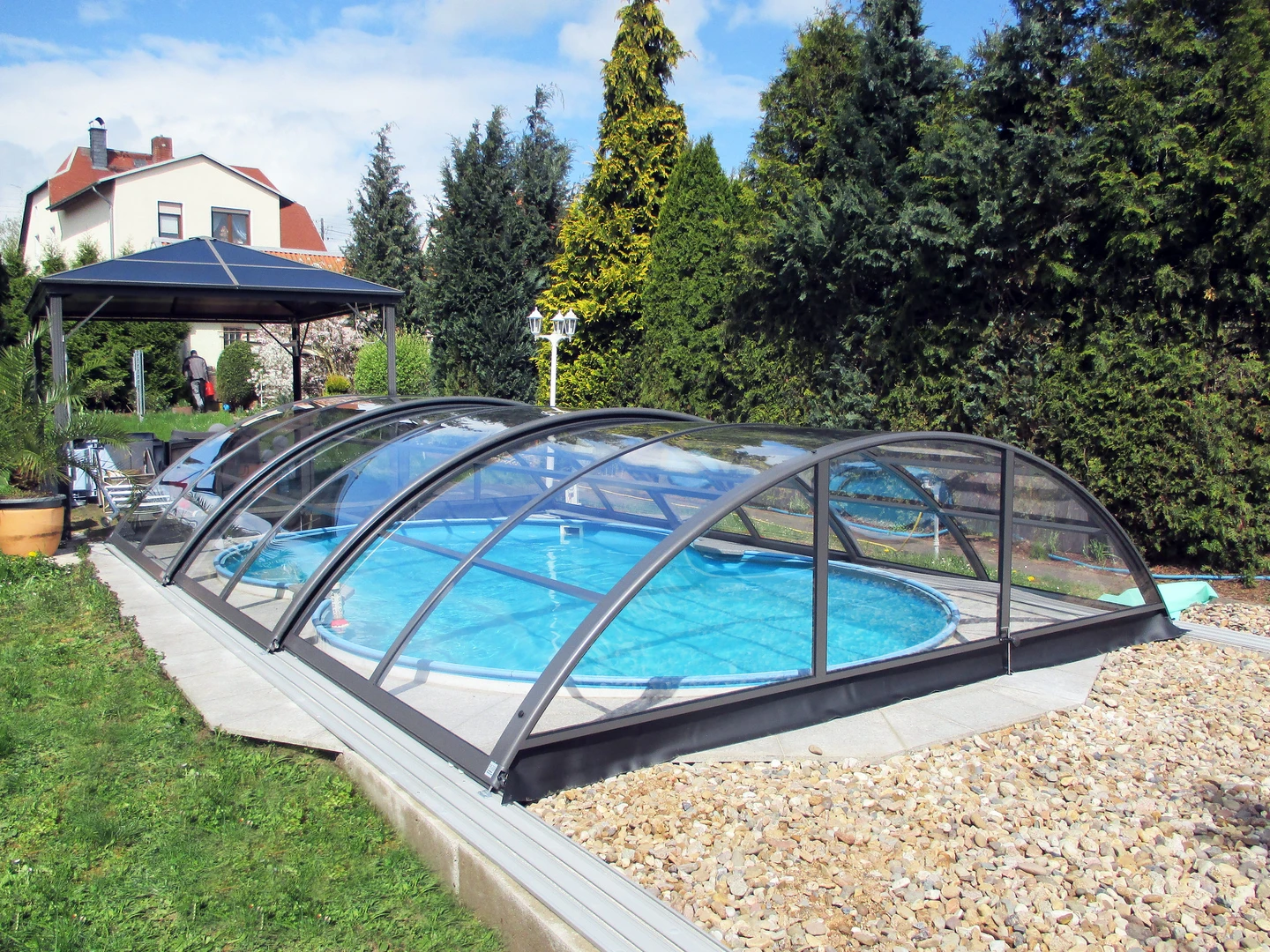 Elegant design på AZURE COMPACT pooltak