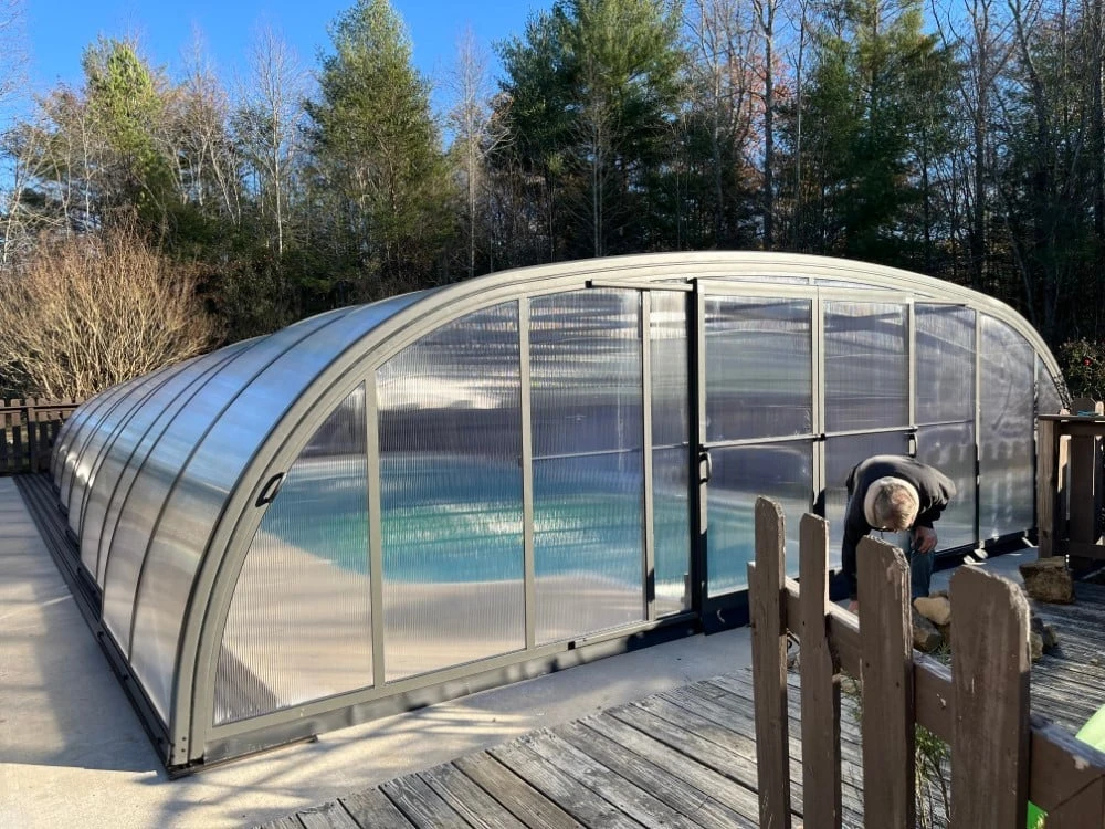 John L. från Tennessee, USA, bestämde sig för att investera i ett pooltak för att maximera användningen av sin utomhuspool och skydda den från växlande väder och smuts. Han delar sin nöjdhet i några enkla ord: