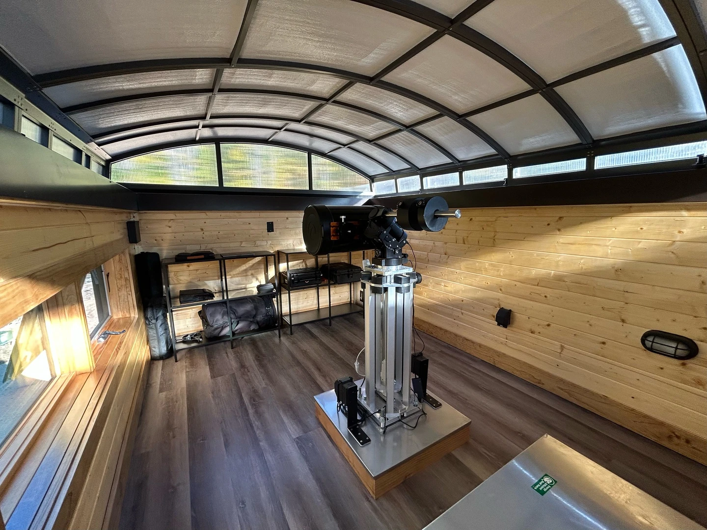 Innovativa framsteg och idéer är det som driver experter som vår kund, och det var också det som fick honom att använda ett pooltak i ett ovanligt sammanhang. En skjutbar konstruktion med transparent polykarbonatfyllning för att skydda poolen blev det perfekta taket för hans privata observatorium, en plats för astronomiska observationer och för avkoppling under stjärnorna.