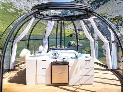 Pergola SPA från Alukov är en lyxig multifunktionell pergola med transparent öppningsbart tak, integrerat solskydd och fjärrkontroll. Den erbjuder komfort, skydd och stil för året-runt-användning av din trädgård, terrass eller relaxzon.