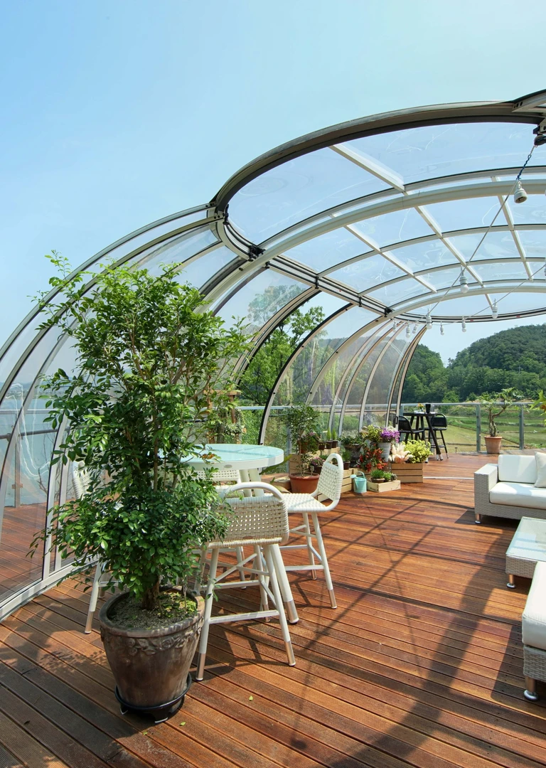 Med ett spatak kan du njuta av avbruten avkoppling även i regn, snö eller stark vind. Samtidigt får du mer integritet och förlänger livslängden på spat och dess teknik. De eleganta konstruktionerna, designade med fokus på detaljer, kompletterar naturligt alla utomhusmiljöer—oavsett om det är en trädgård vid en familjevilla, en terrass eller en wellnesszon.