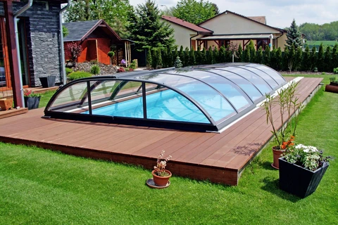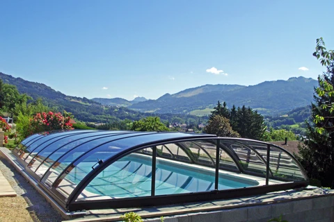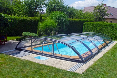 AZURE Flat Compact pooltak erbjuder den ideala kombinationen av funktionalitet och estetik för poolägare som söker en diskret men effektiv lösning för poolskydd. Tack vare användningen av flera radier har taket en flatare form med låg höjd, vilket minimerar den visuella påverkan på omgivningen. Höjden varierar från 0,70 till 1,05 meter, vilket gör det möjligt att simma bekvämt under samtidigt som det ger tillräckligt skydd mot ogynnsamma väderförhållanden.
