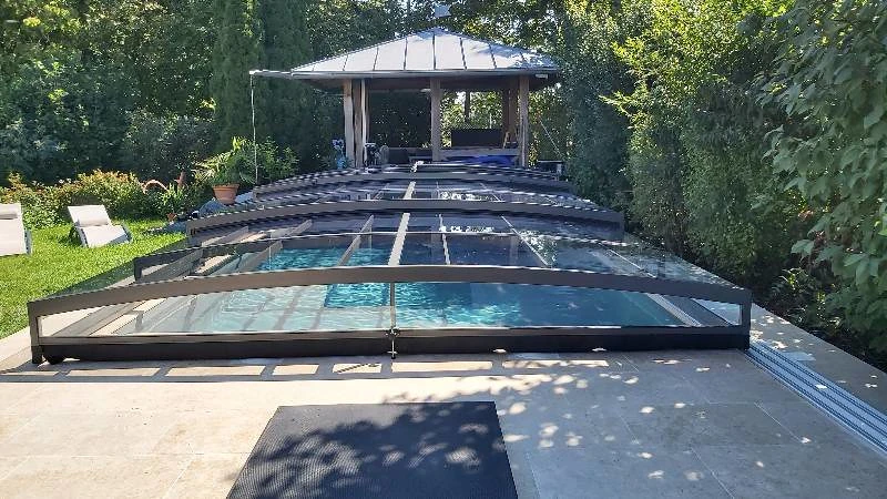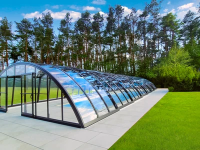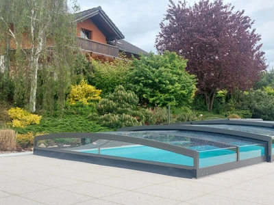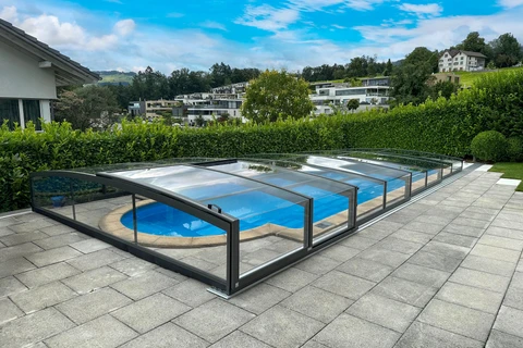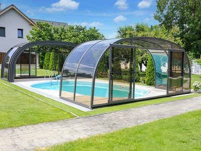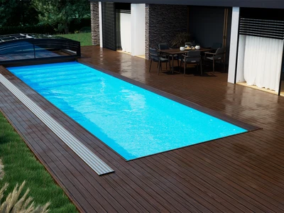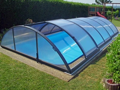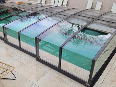 Pooltaket PARADE är idealiskt för poolägare som söker en effektiv och estetisk skyddslösning. Den teleskopiska konstruktionen gör öppning och stängning enkel och underlättar både tillträde och underhåll. Transparenta paneler ger ständig sikt mot vattenytan, medan säkerhetsfunktioner förhindrar obehörig öppning och skyddar mot väderpåverkan. Tack vare skena endast på ena sidan får du ett elegant utseende och enkel åtkomst från övriga sidor. Detta pooltak förlänger inte bara badsäsongen utan minskar även underhåll och uppvärmningskostnader – en långsiktig besparing.