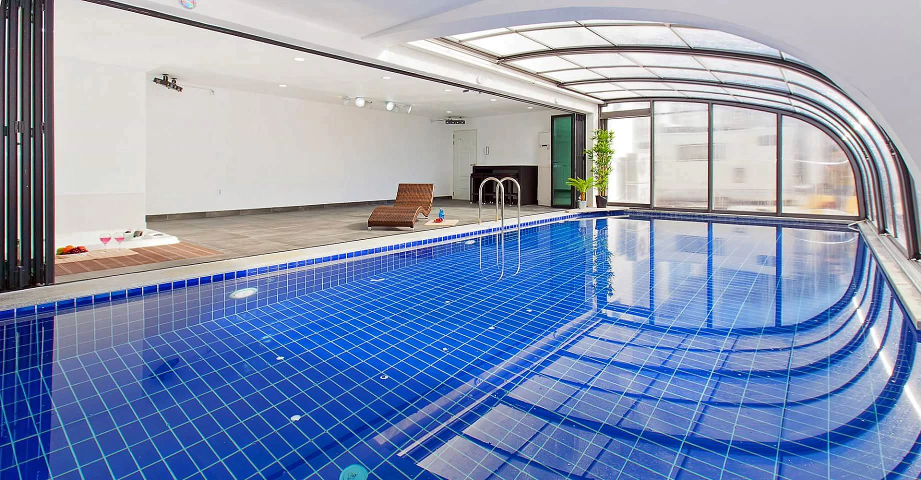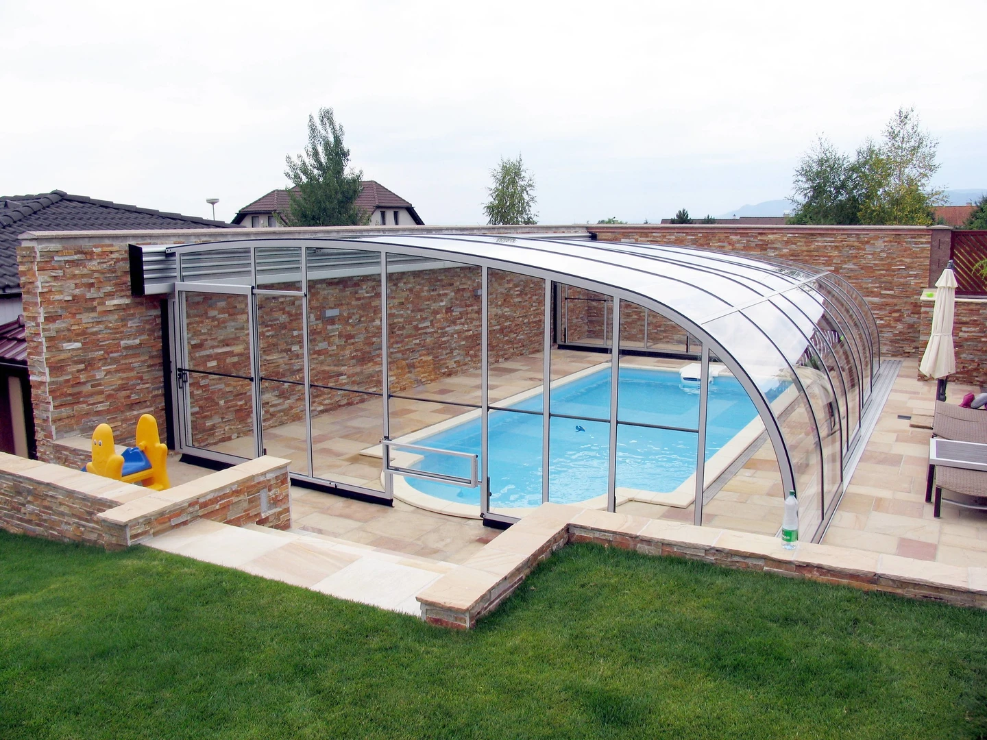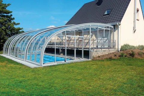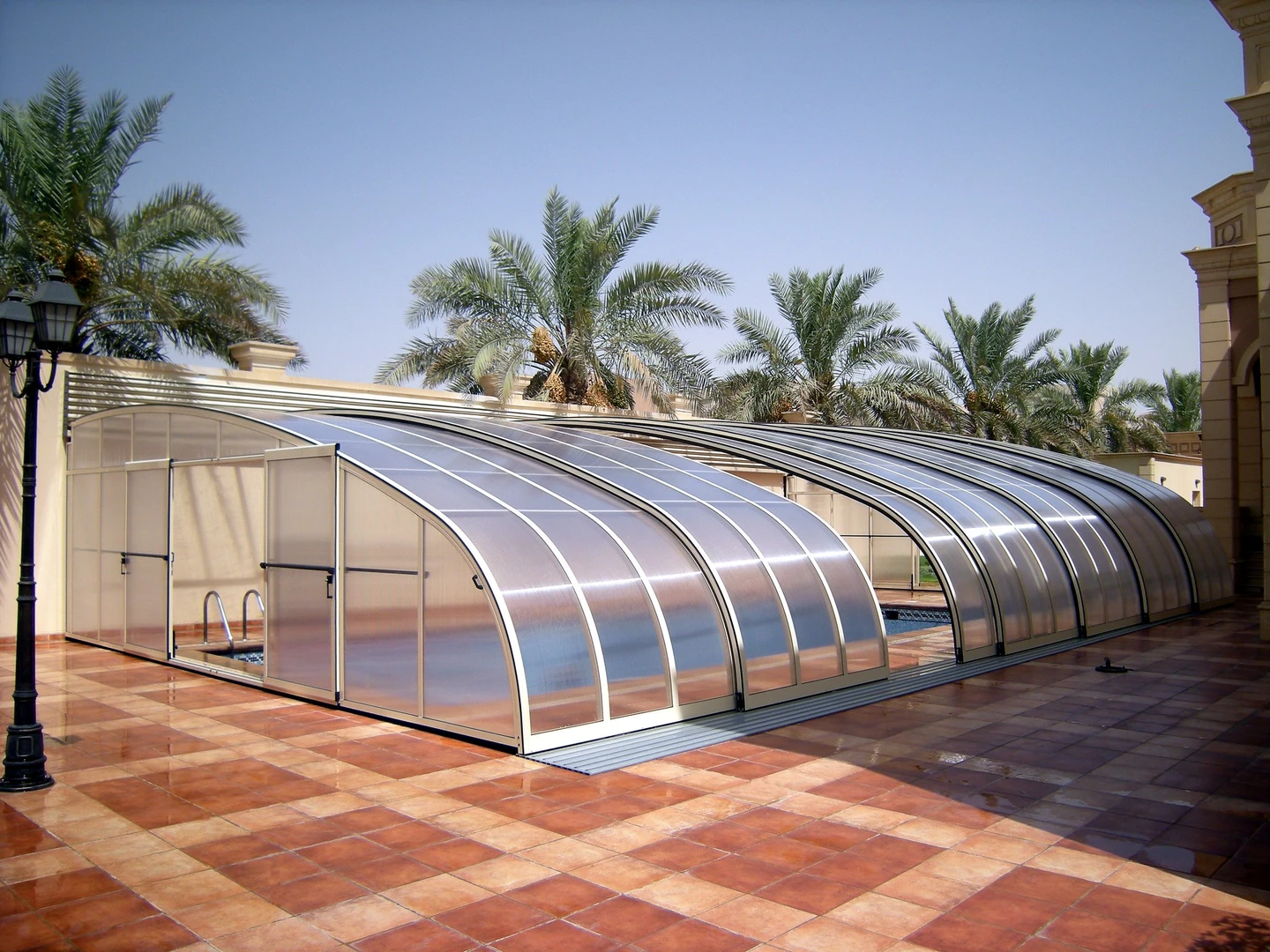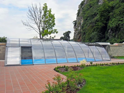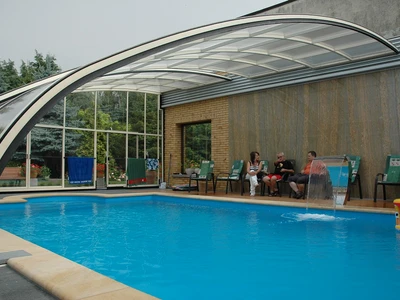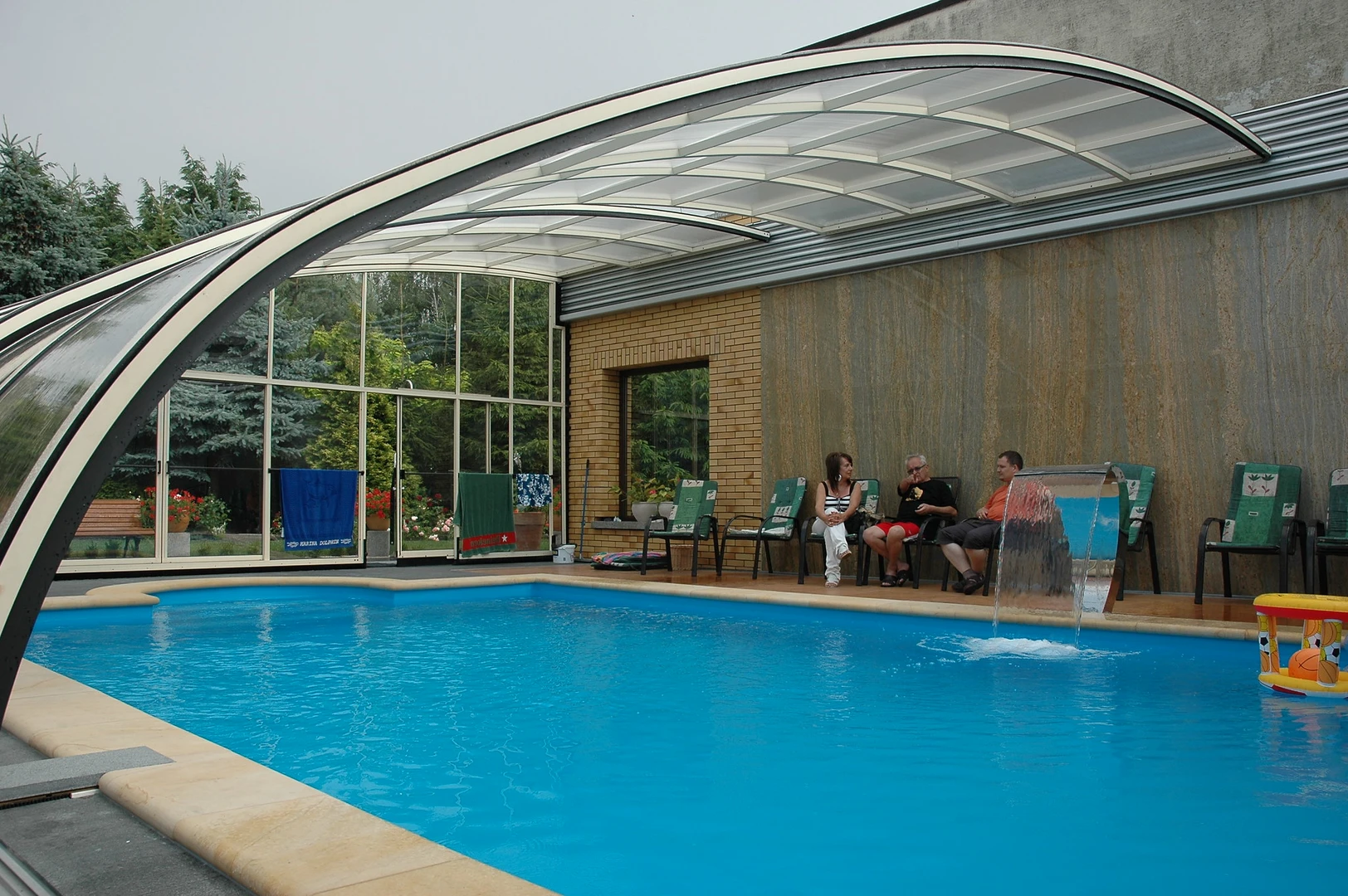 Pooltak STYLE™ är designat för att täcka pooler intill en husvägg eller fristående vägg. Tack vare den välvda aluminiumprofilformen smälter den harmoniskt ihop med byggnaden och skapar en kompakt estetisk lösning.