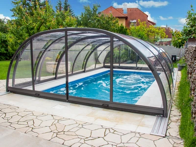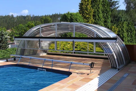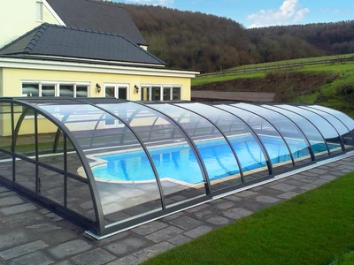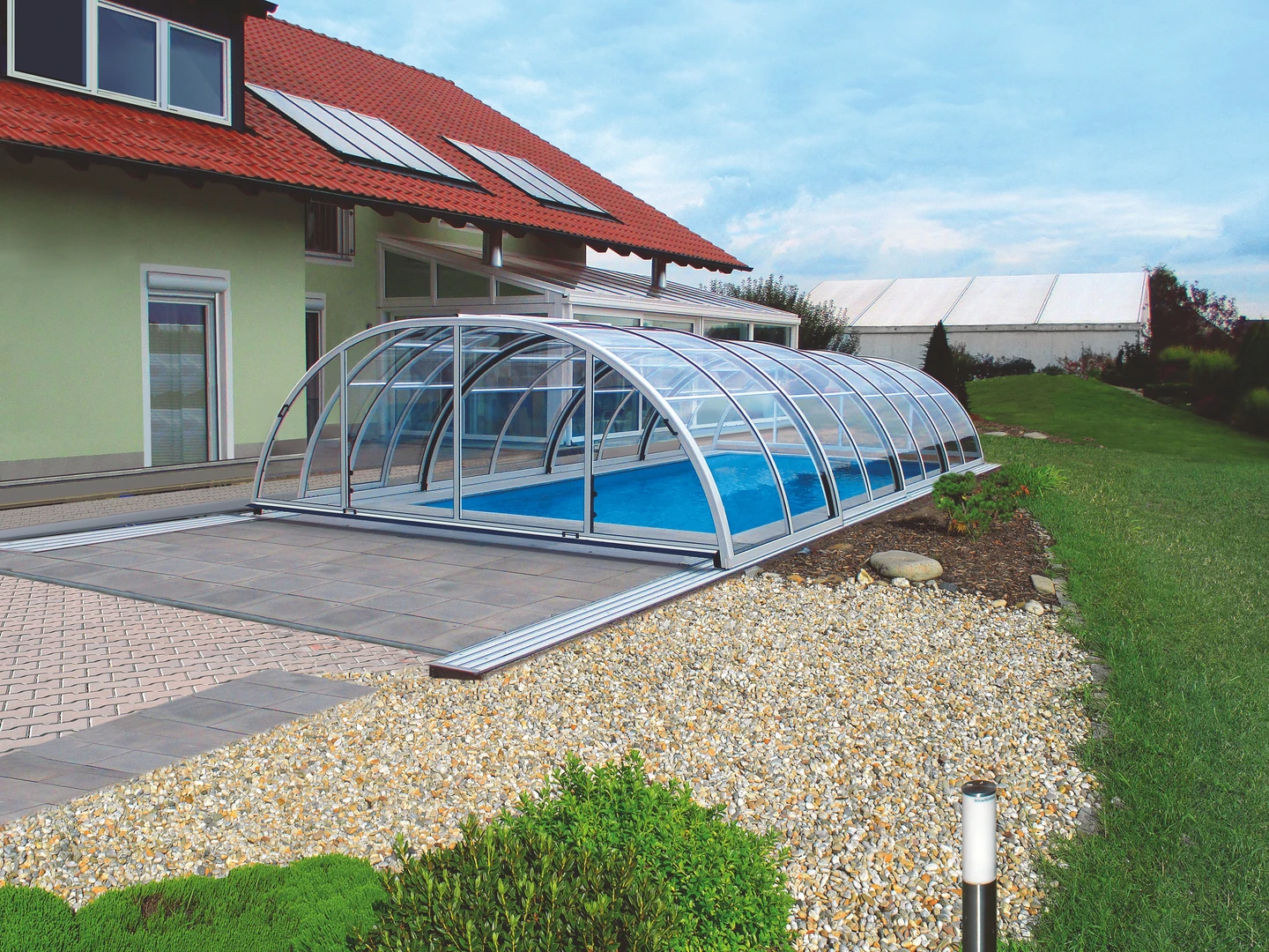 TROPEA NEO™ pooltak representerar den ideala kompromissen mellan det rymliga LAGUNA NEO™ och det låga ELEGANT NEO™. Konstruktionen skapar en rymlig hall som möjliggör fri rörelse i den centrala delen av det täckta utrymmet. Väggarna kan tillverkas av kompakt polykarbonat som är lika transparent som glas, vilket ger fri utsikt över trädgården och enkel uppsikt över barn.