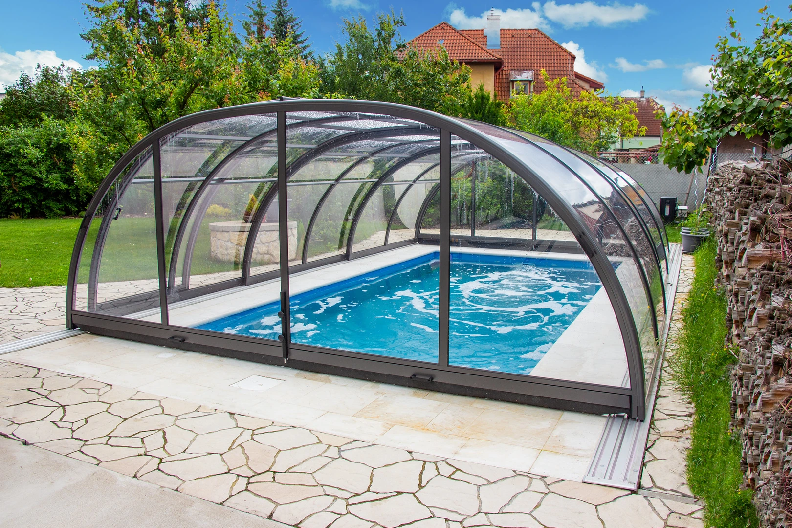 TROPEA NEO™ pooltak är idealiskt för den som söker ett rymligt och estetiskt pools­kydd. Den generösa hallen under taket ger fri rörelse och passar familjeaktiviteter eller avkoppling.