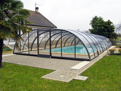 Pooltak TROPEA NEO™ kombinerar elegant design med funktionalitet och erbjuder en rymlig interiör för bekväm rörelse. Tack vare sina transparenta kompakta polykarbonatväggar smälter det naturligt in i den omgivande grönskan.