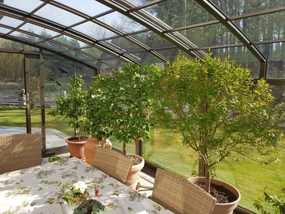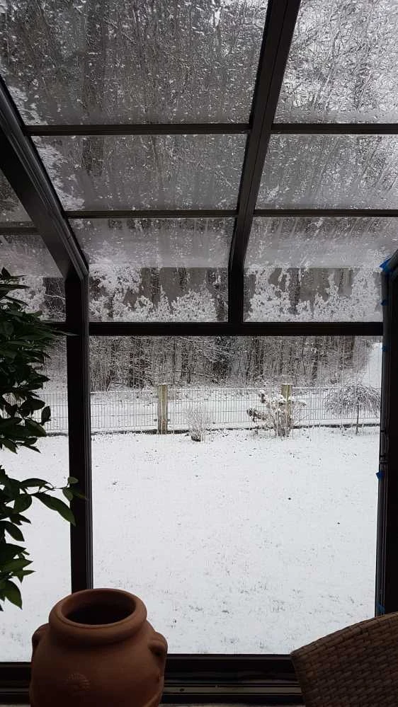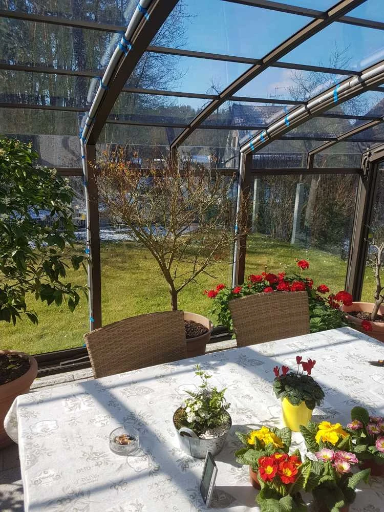 Tack vare polykarbonatpanelerna förblir terrassen behagligt varm även under kallare månader.