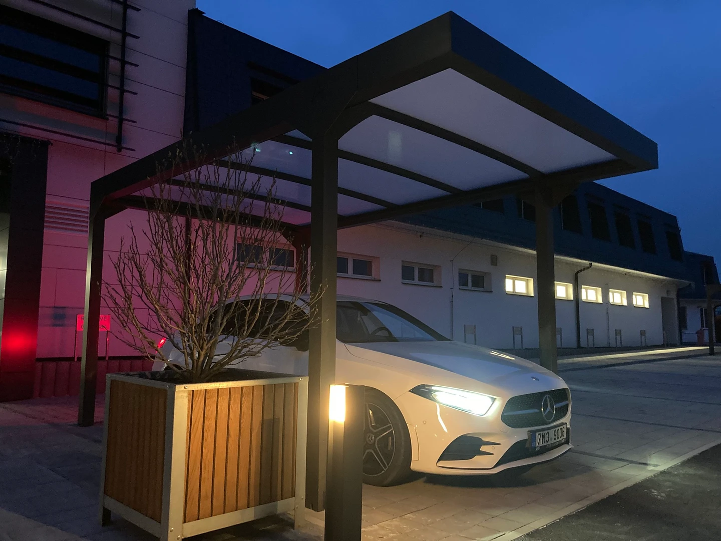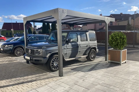 Carport Solar Premium är ett förstklassigt solskydd för ditt fordon, utrustat med ramlösa glas-glas-fotovoltaiska paneler. Det har elegant design, integrerade rännor och regnavledning. Singelvarianten med 9 paneler levererar 3,91 kWp, medan dubbelvarianten med 15 paneler når 6,52 kWp – tillräckligt för att ladda elfordon effektivt och minska energikostnaderna.