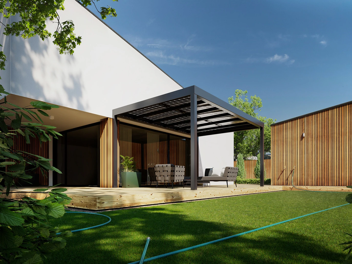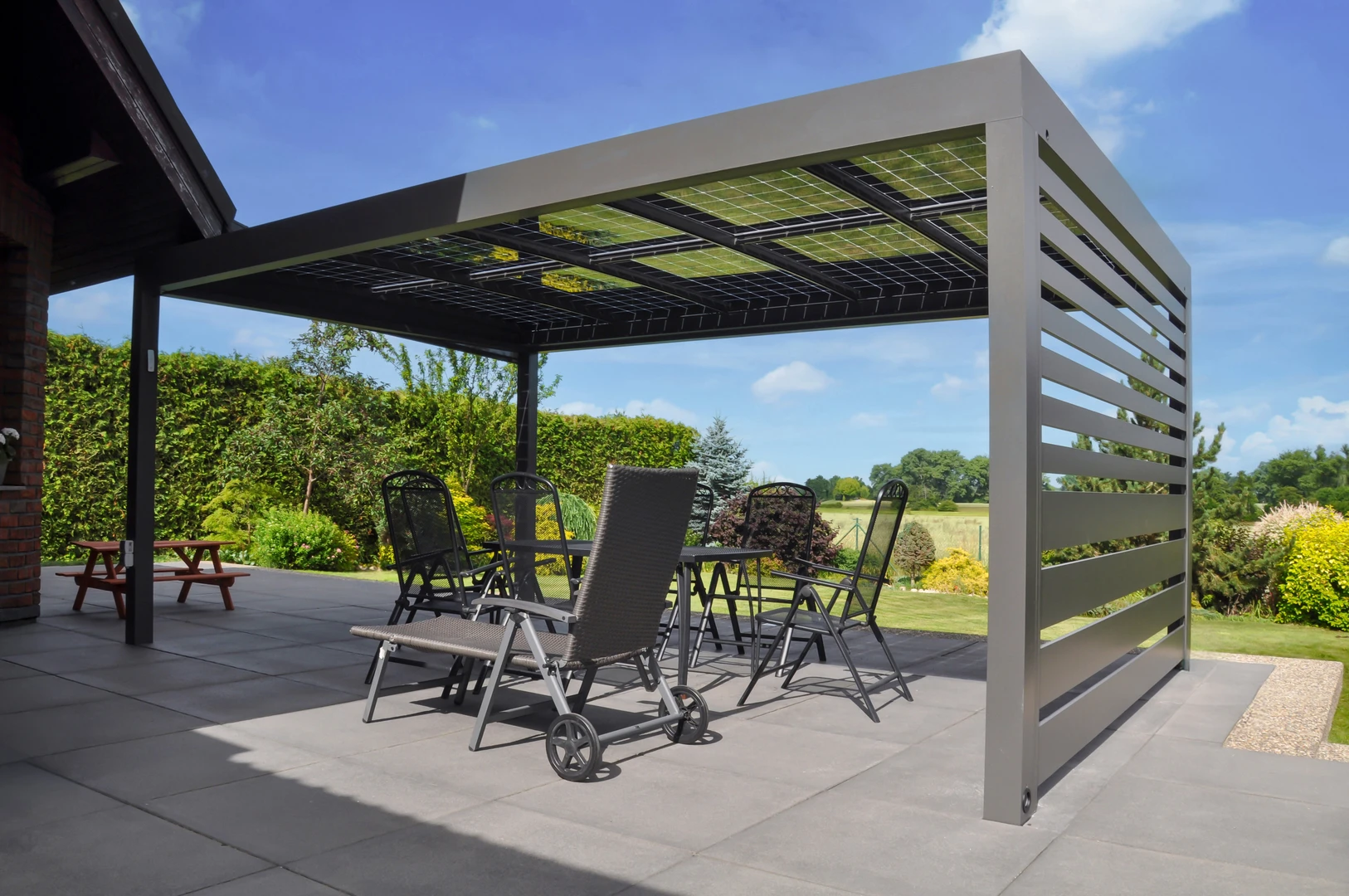 Carport Solar Solid är ett avancerat solskydd för att skydda ditt fordon eller din fordonsflotta. Det erbjuder flexibla dimensioner, kompatibilitet med inramade solpaneler från olika leverantörer och en elegant antracitdesign. Mer kostnadseffektivt och yteffektivt än traditionella garage.