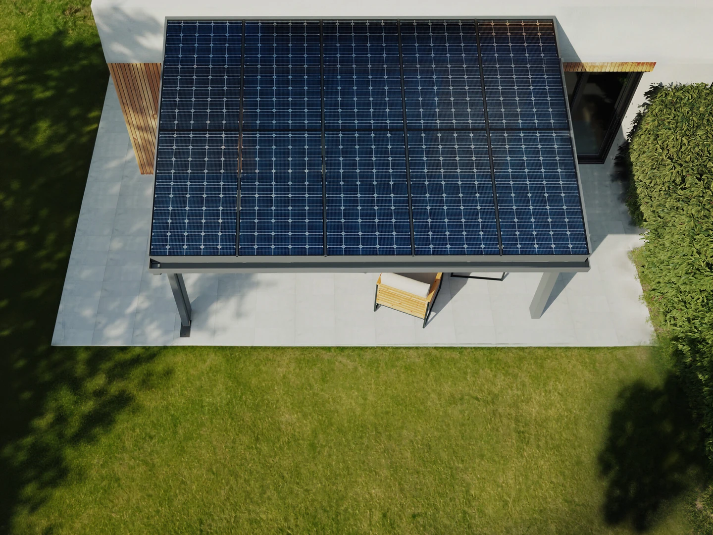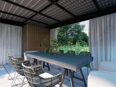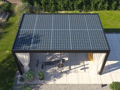 Carport Solar Premium är ett förstklassigt solskydd för ditt fordon, utrustat med ramlösa glas-glas-fotovoltaiska paneler. Det har elegant design, integrerade rännor och regnavledning. Singelvarianten med 9 paneler levererar 3,91 kWp, medan dubbelvarianten med 15 paneler når 6,52 kWp – tillräckligt för att ladda elfordon effektivt och minska energikostnaderna.