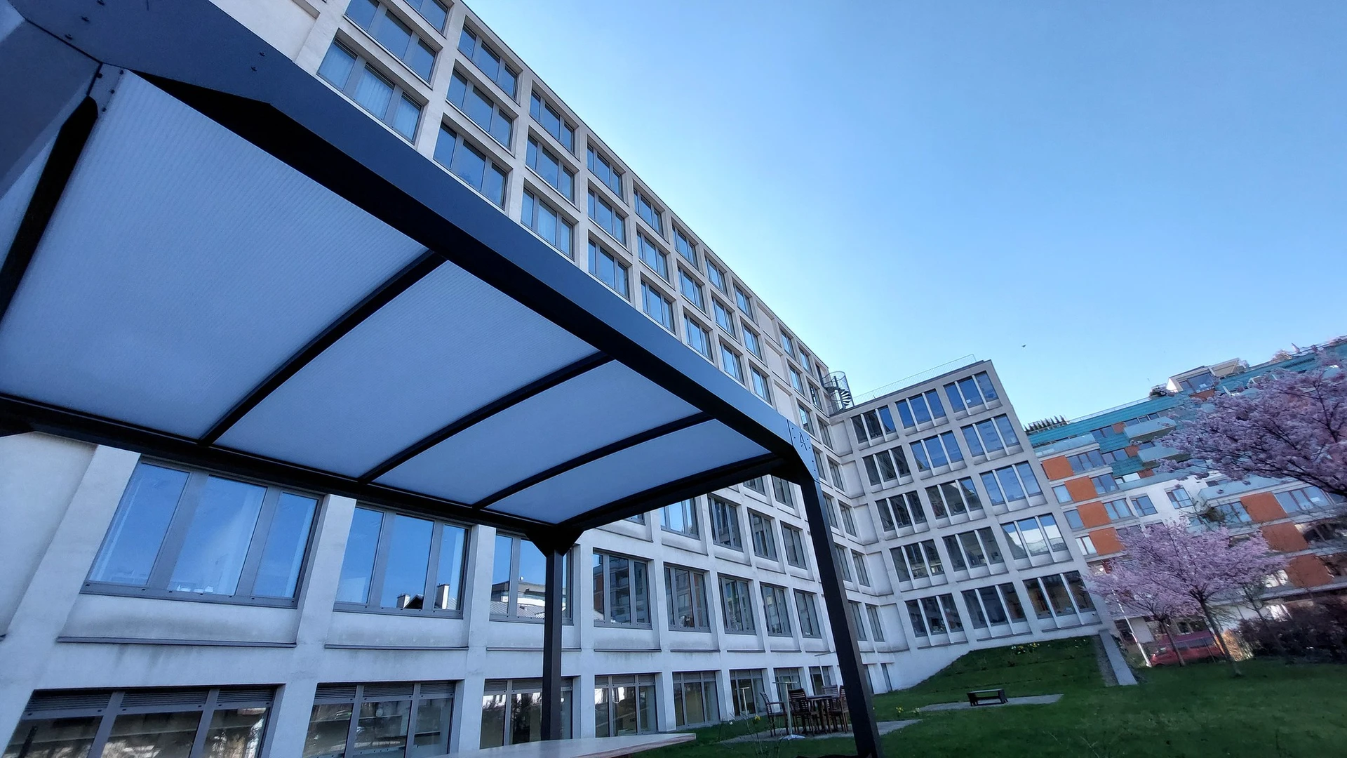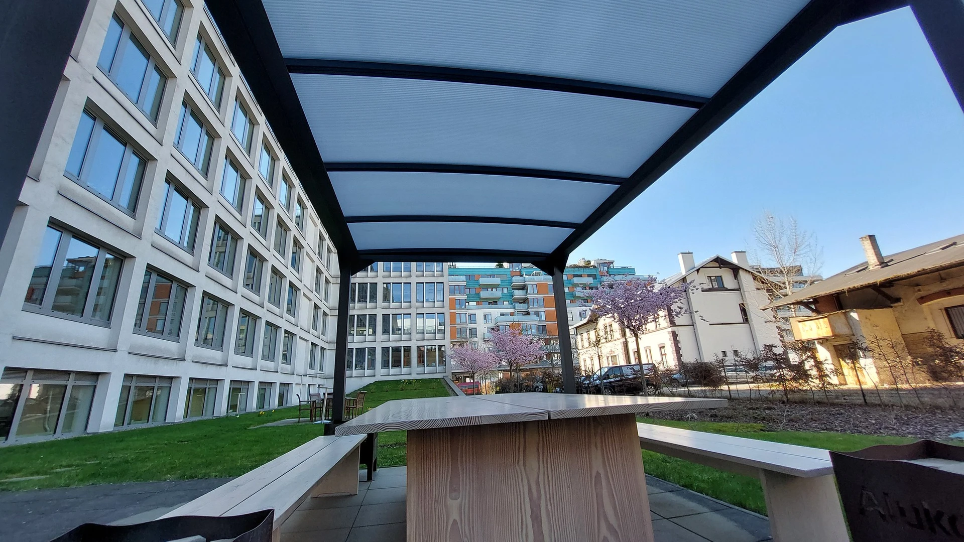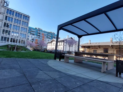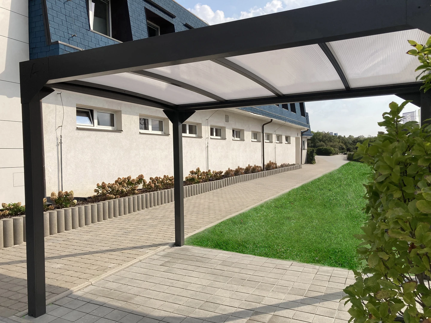 Polykarbonattaket skyddar pålitligt mot regn, UV-strålning och måttliga vindar samtidigt som det släpper igenom gott om dagsljus. Konstruktionen kräver minimalt underhåll och kan färgsättas för att matcha husets fasad. Den rena designen gör den lätt att integrera i allt från stadsträdgårdar till lantliga miljöer.
