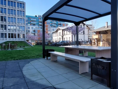 ECO pergola kan användas som en praktisk täckt sittplats på terrassen, ett skydd för en utomhusmatplats, en yta för barnens lek i alla väder eller en plats för grillning; den är också utmärkt för caféer eller bistros som en enkel och elegant lösning för uteservering.