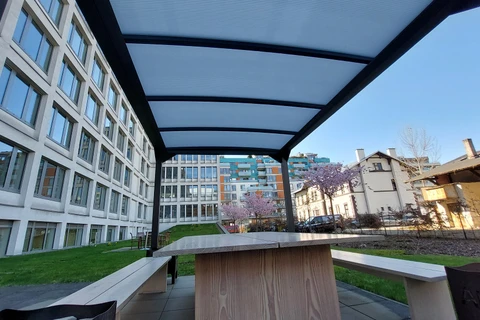 ECO Pergola är den perfekta lösningen för dig som vill ha ett pålitligt tak till rimlig kostnad. Den kan kompletteras med sidoväggar (t.ex. ramlösa eller ramade) och förvandlas till ett delvis eller helt skyddat utrymme för vila, sittplatser eller grill.